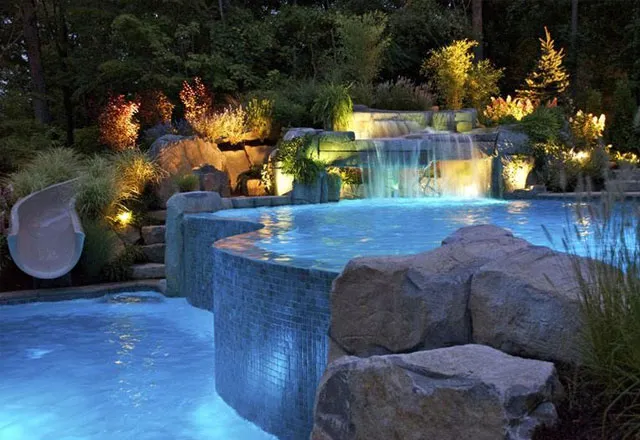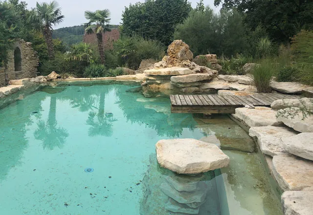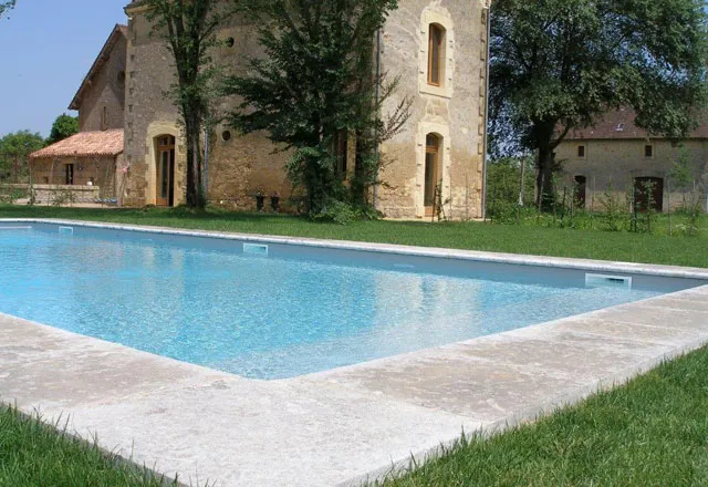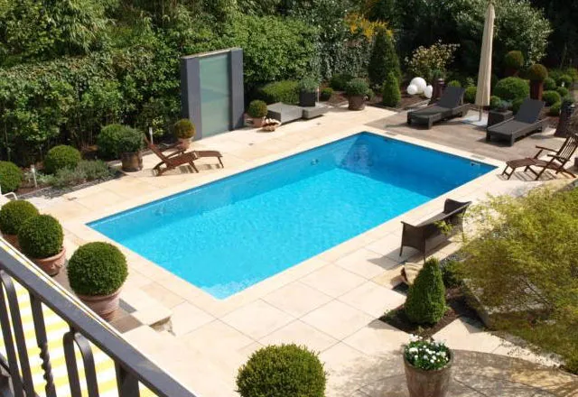 Draufsicht einer Villa Poolbereich mit Treppen