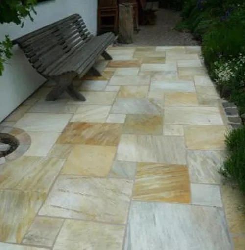 Gartenplatten quadratisch, im Verband und polygonal aus Marmor, Granit und Porphyr